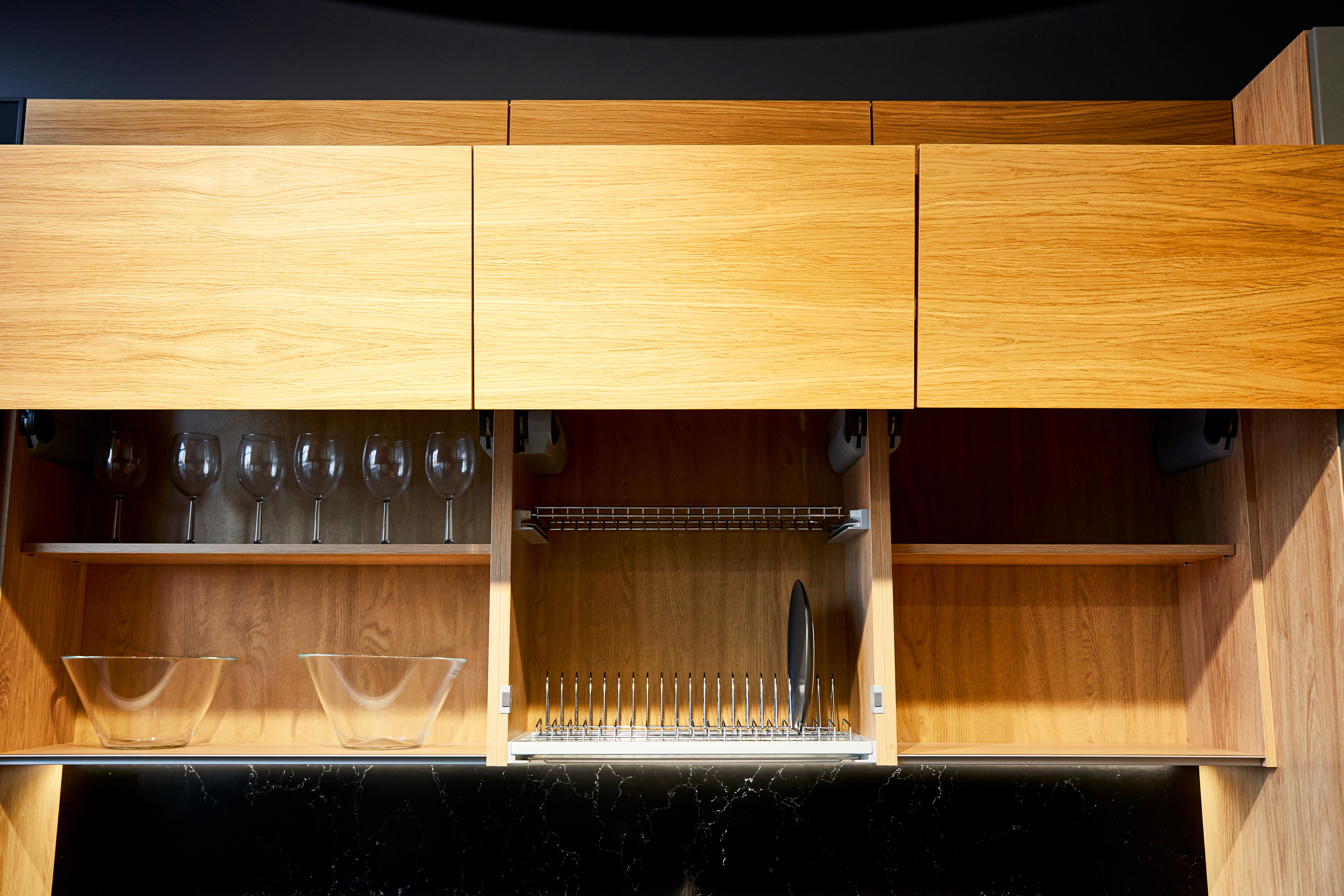 По желанию покупателя, мы можем установить внутри кухонных шкафов современные системы хранения — выдвижные полки и сетки, выкатные корзины, карусели, бутылочницы и тандемы. Наши менеджеры также помогут укомплектовать вашу кухню СТРАДА мойкой и необходимой бытовой техникой, и вы сможете начать пользоваться ею сразу по завершении монтажа.