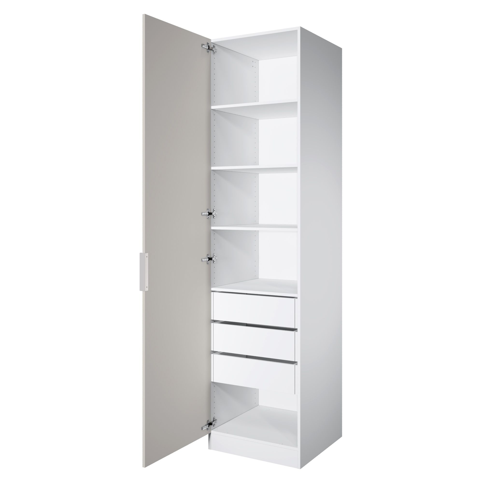 В комплект шкафа включены крепеж для сборки, петли для навешивания распашной двери, ручка, функциональное наполнение.