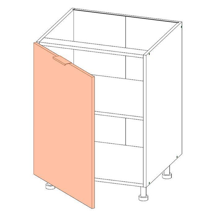 Обратите внимание, что для этого корпуса необходимо выбрать фасадную часть - распашную дверь. Цвета фасадов можно комбинировать. Не забудьте выбрать для вашей кухни столешницу и цоколь.